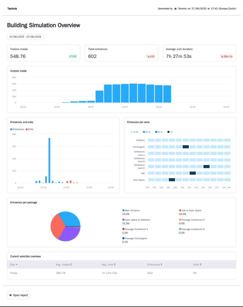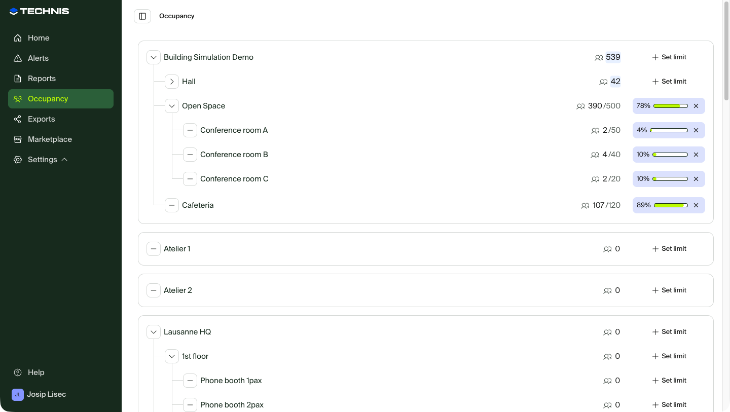 La version 3 introduit un nouveau tableau de bord Occupation depuis lequel vous pouvez suivre le nombre de personnes présentes ou le taux d’occupation de n’importe quelle zone. Comme en version 2, les corrections manuelles ne peuvent être effectuées qu’au niveau de la zone de plus haut niveau.